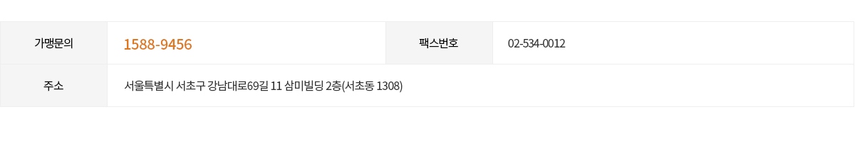 TEL 1588-9456 FAX 02-534-0012 ADD 서울특별시 서초구 강남대로 449-3, 4F